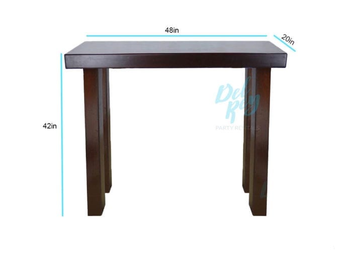 The Refined Wood Bar Height Table is a classic and sturdy table that fits into an array of different settings. This table fits perfectly into any earth tone color scheme. The table features a deep and rich walnut color wood with a simple yet classic style. The legs can be removed, making the table easy to transport and to store away. This is can be used as a dining table or to enjoy your favorite cocktail drink with a few friends.